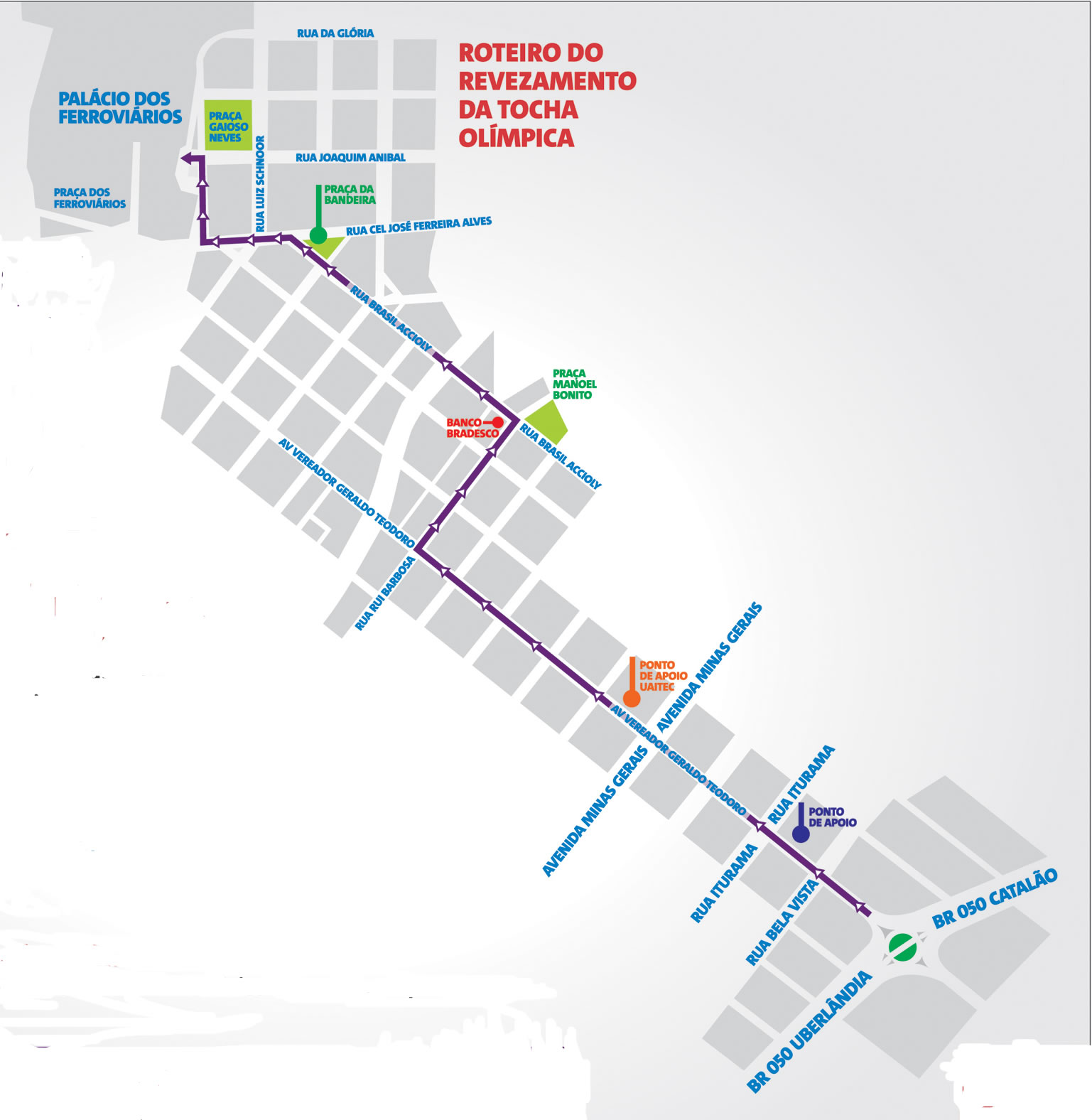 Confira abaixo, o roteiro do revezamento da Tocha Olímpica em Araguari:
